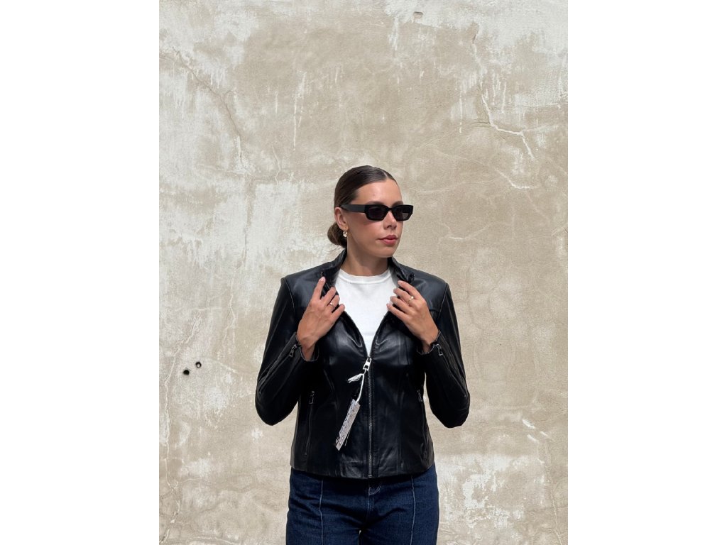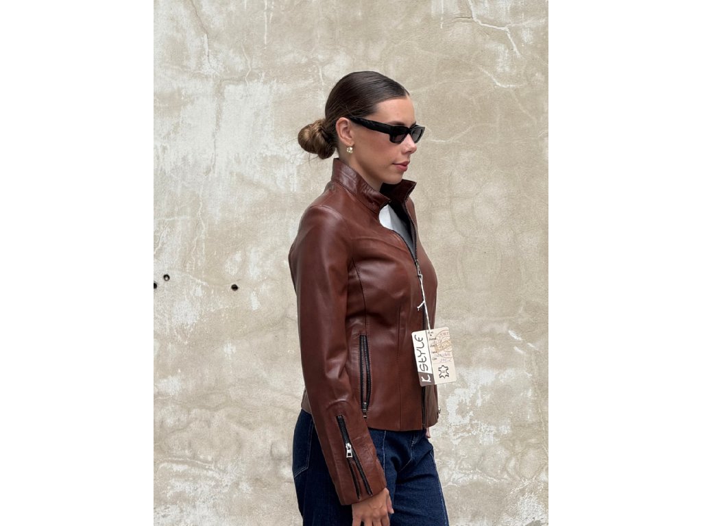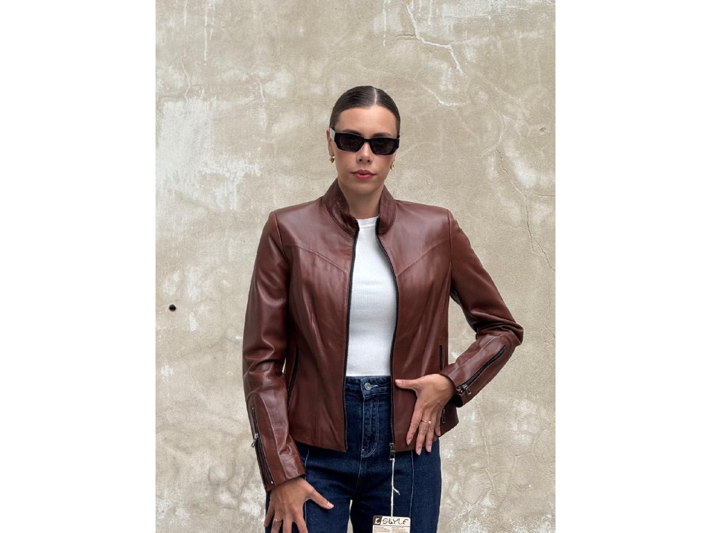 ALINA – Dámska Kožená Bunda z Jahňacej Kože so Zipsom | KSTYLE