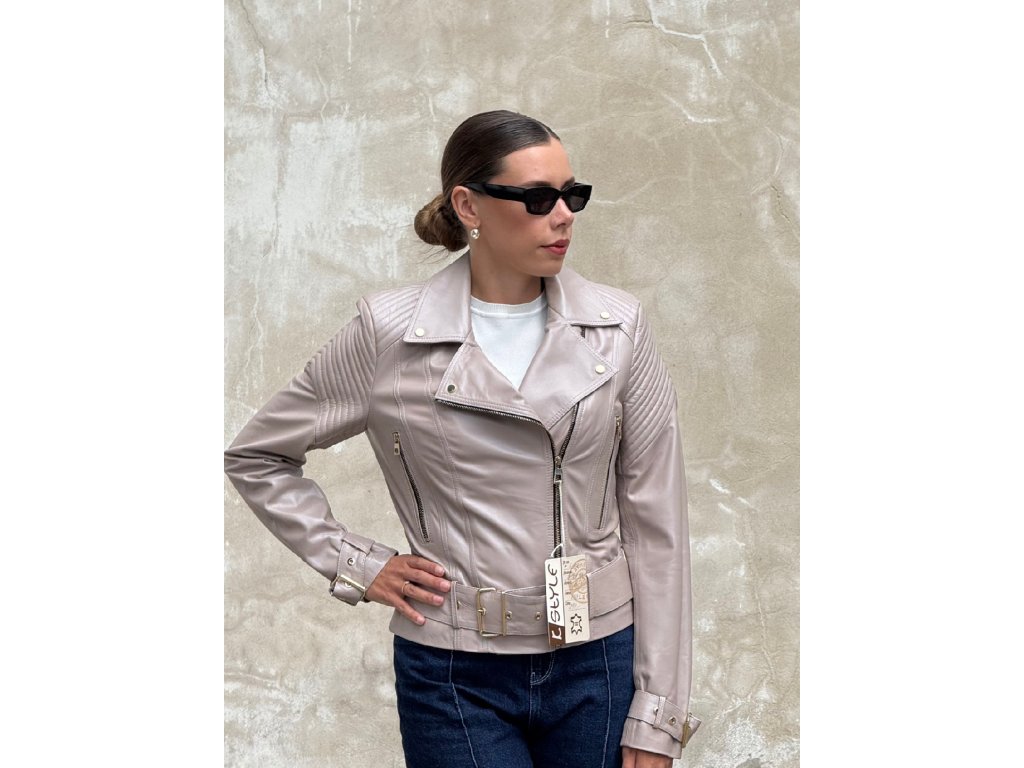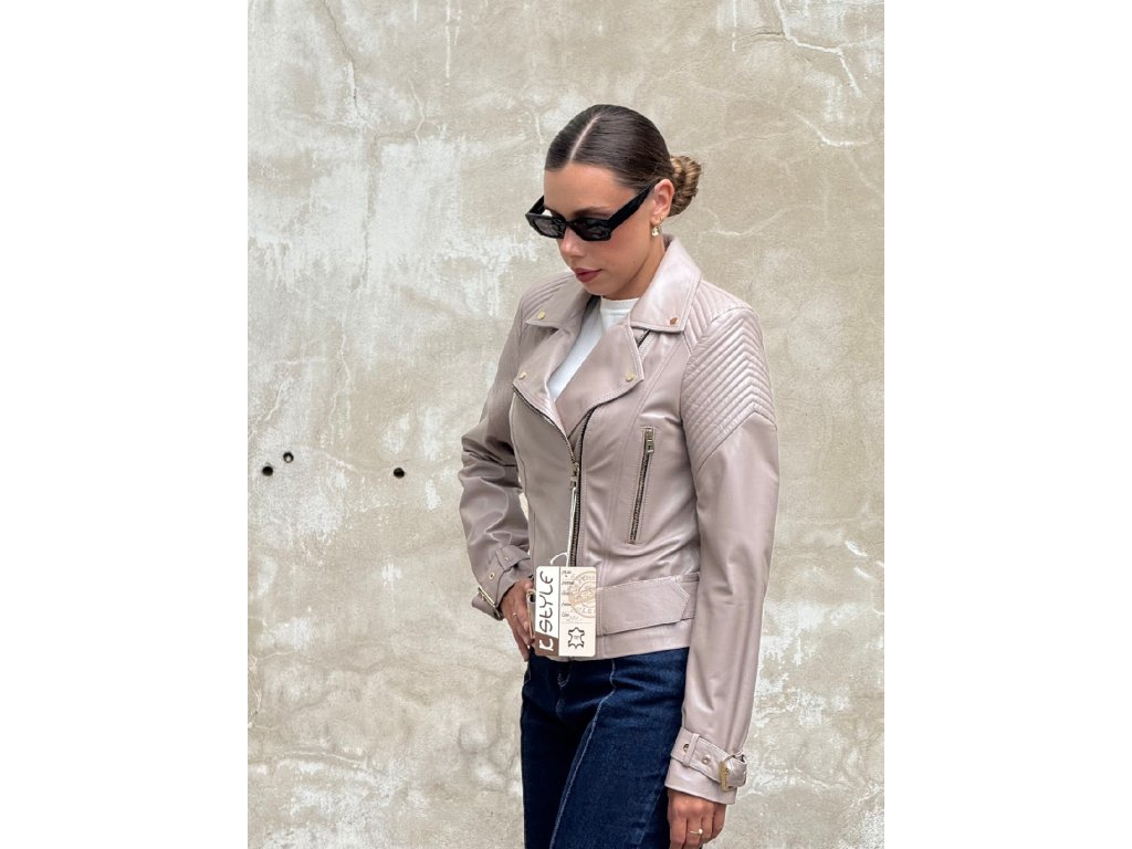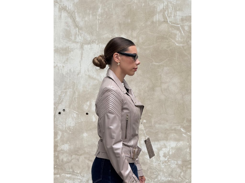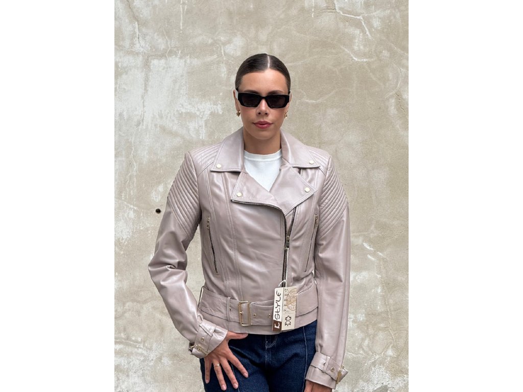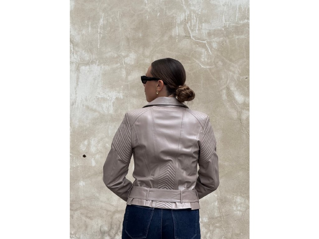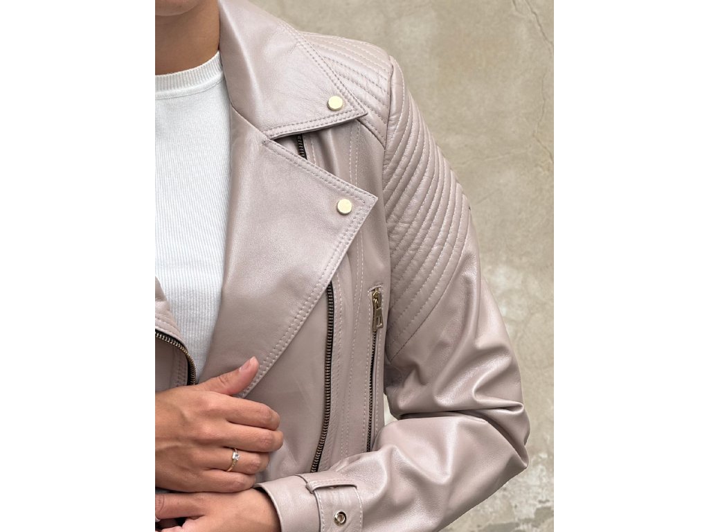 Dámska kožená bunda ALTHEA je kombináciou luxusného materiálu, jemnej béžovej farby a sofistikovaných zlatých detailov. Moderný strih lichotí postave a prémiová jahňacia koža zaručuje pohodlie a odolnosť.