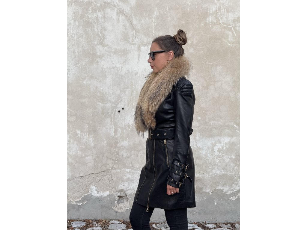 AURELIA – Dámska Kožená Bunda s Líškou a Zlatými Detailmi | KSTYLE