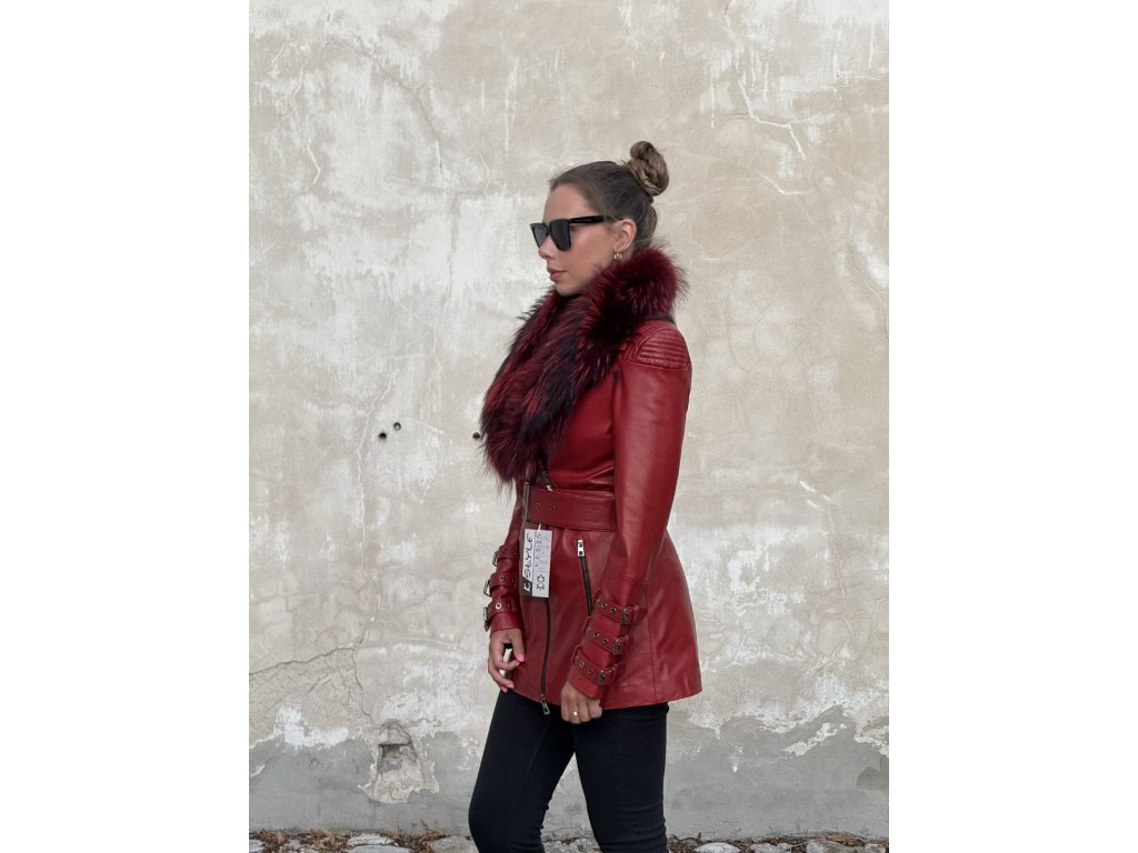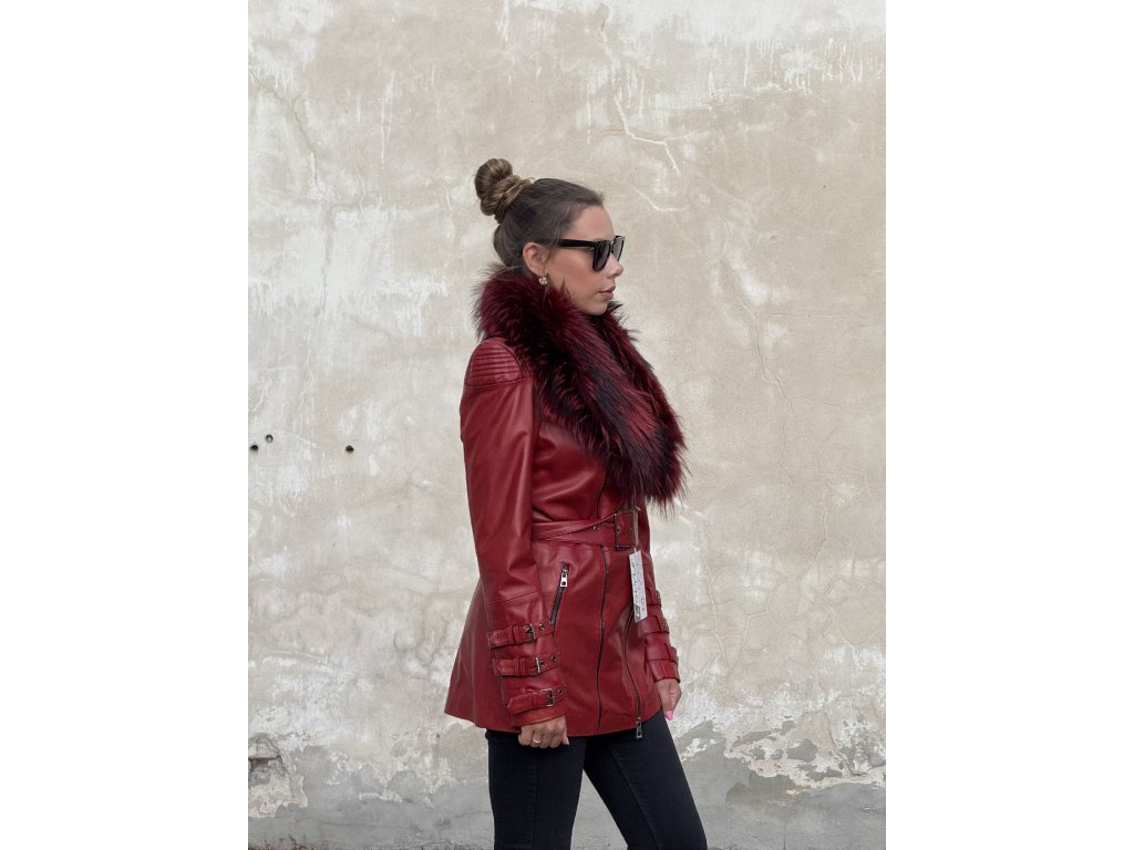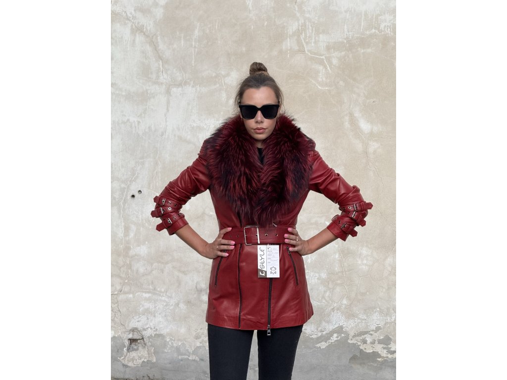 Dámska kožená bunda AURELIA v ružovej, červenej alebo čiernej farbe kombinuje modernú eleganciu a luxus. Prémiová líška a zlaté kovové doplnky dodávajú modelu jedinečný charakter, vďaka čomu je ideálny na špeciálne príležitosti aj každodenné nosenie.