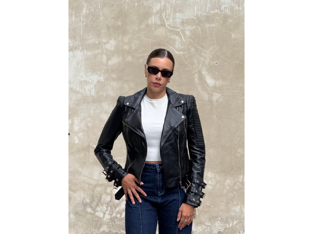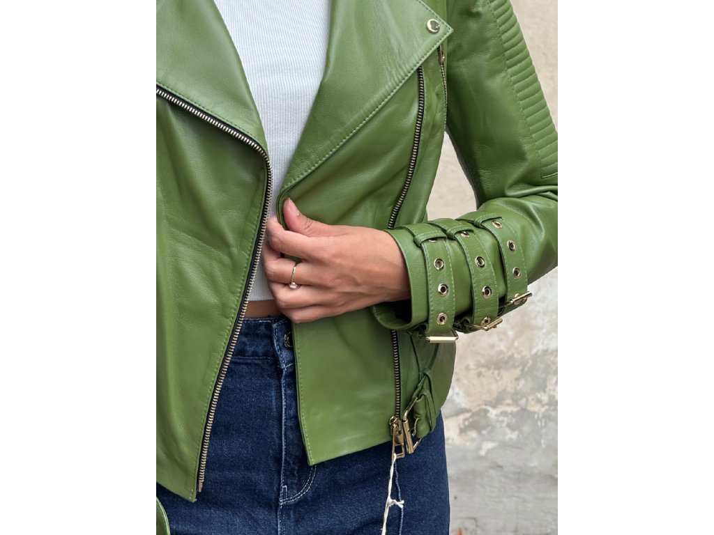 AVELINE – Dámska Čierna a Zelená Bunda so Zlatými Detailami | KSTYLE