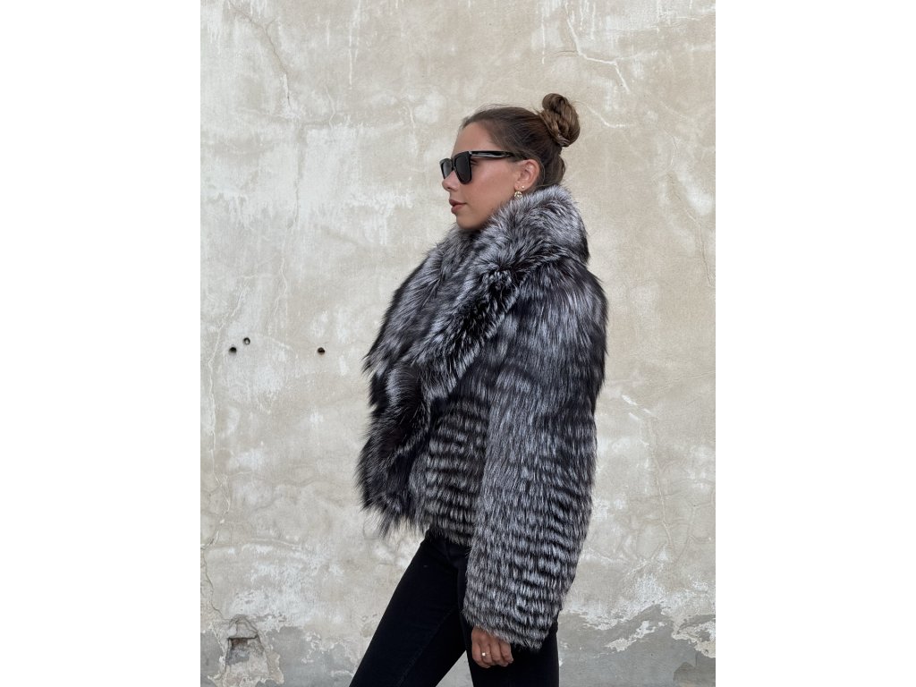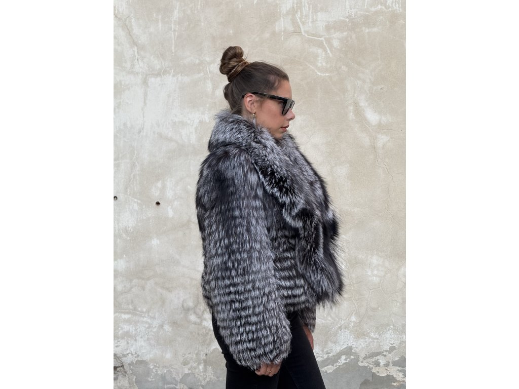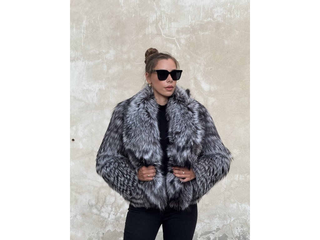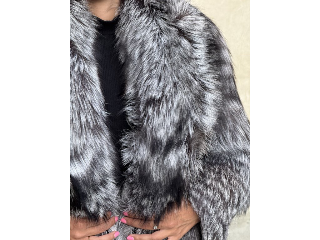 Luxusný dámsky strieborný líškový kožuch FOXANA z pravej kožušiny – nadčasová elegancia, teplo a štýl v jednom.